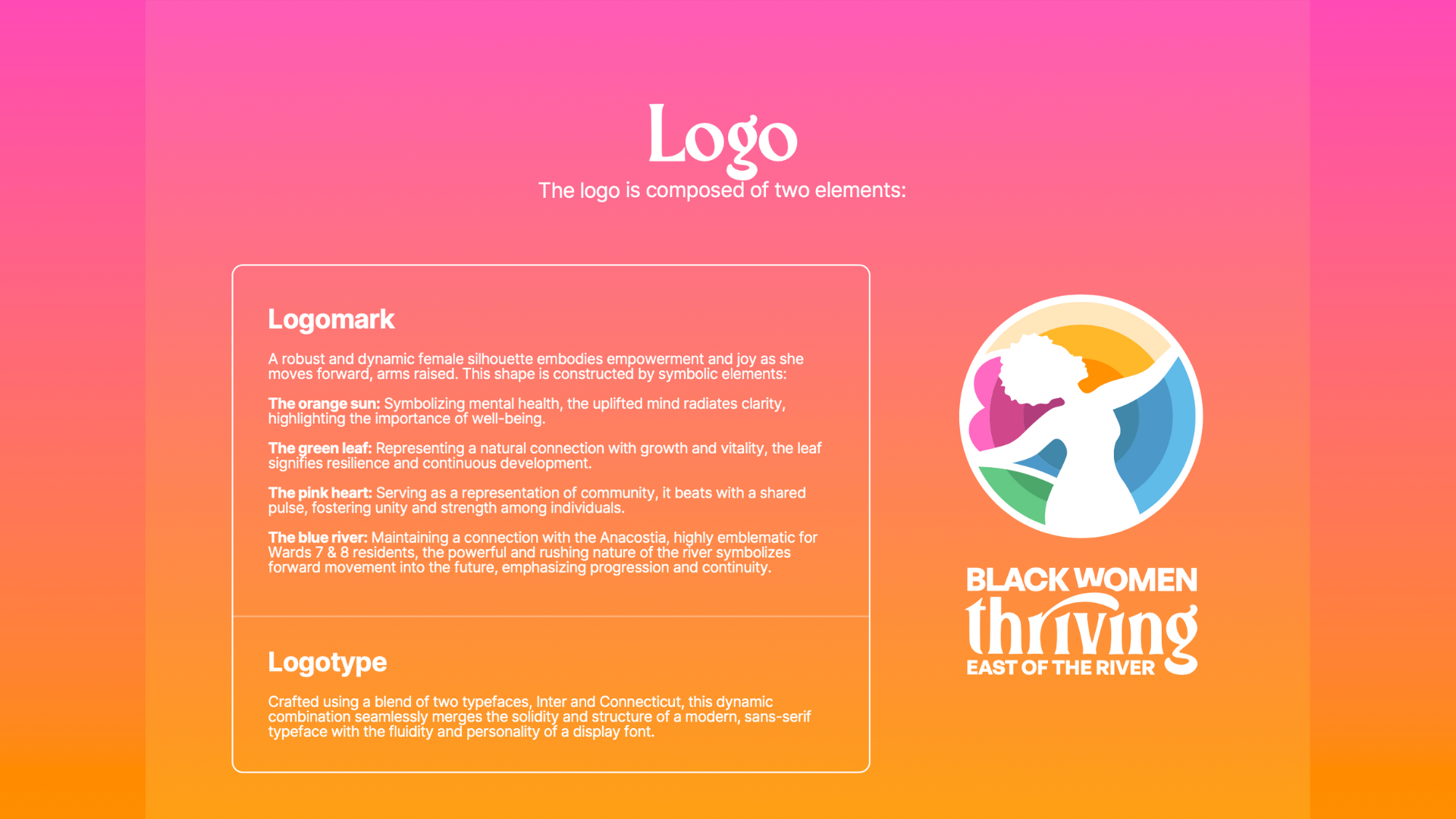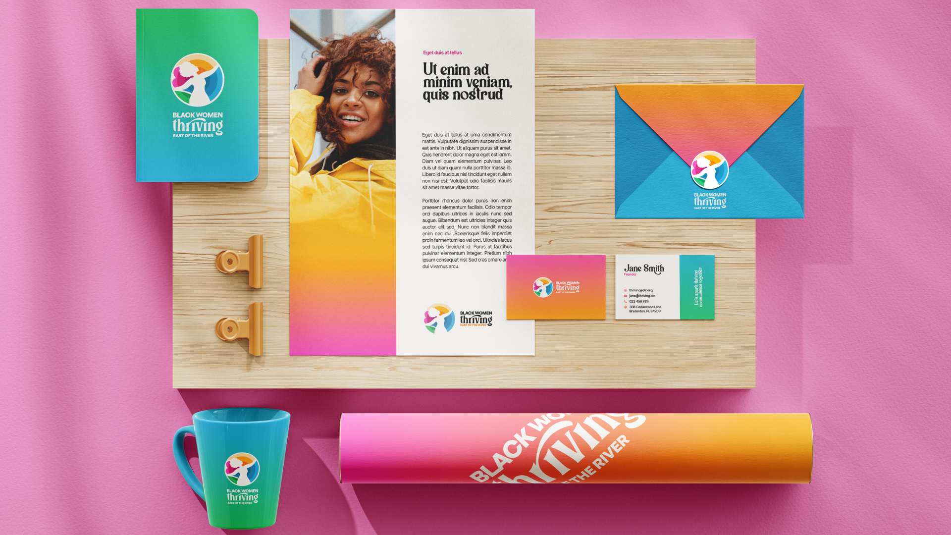 BWTEotR, a newly independent organization, sought a complete rebranding –  a new logo, style guide, and brand identity system –  to reflect its new standing. Our team began by addressing the primary challenge: how do we create a brand that authentically represents “Black Women” and “Thriving”? The resulting logo cleverly uses white space to capture the unique curves of Black women, surrounded by elements symbolizing growth and vitality.